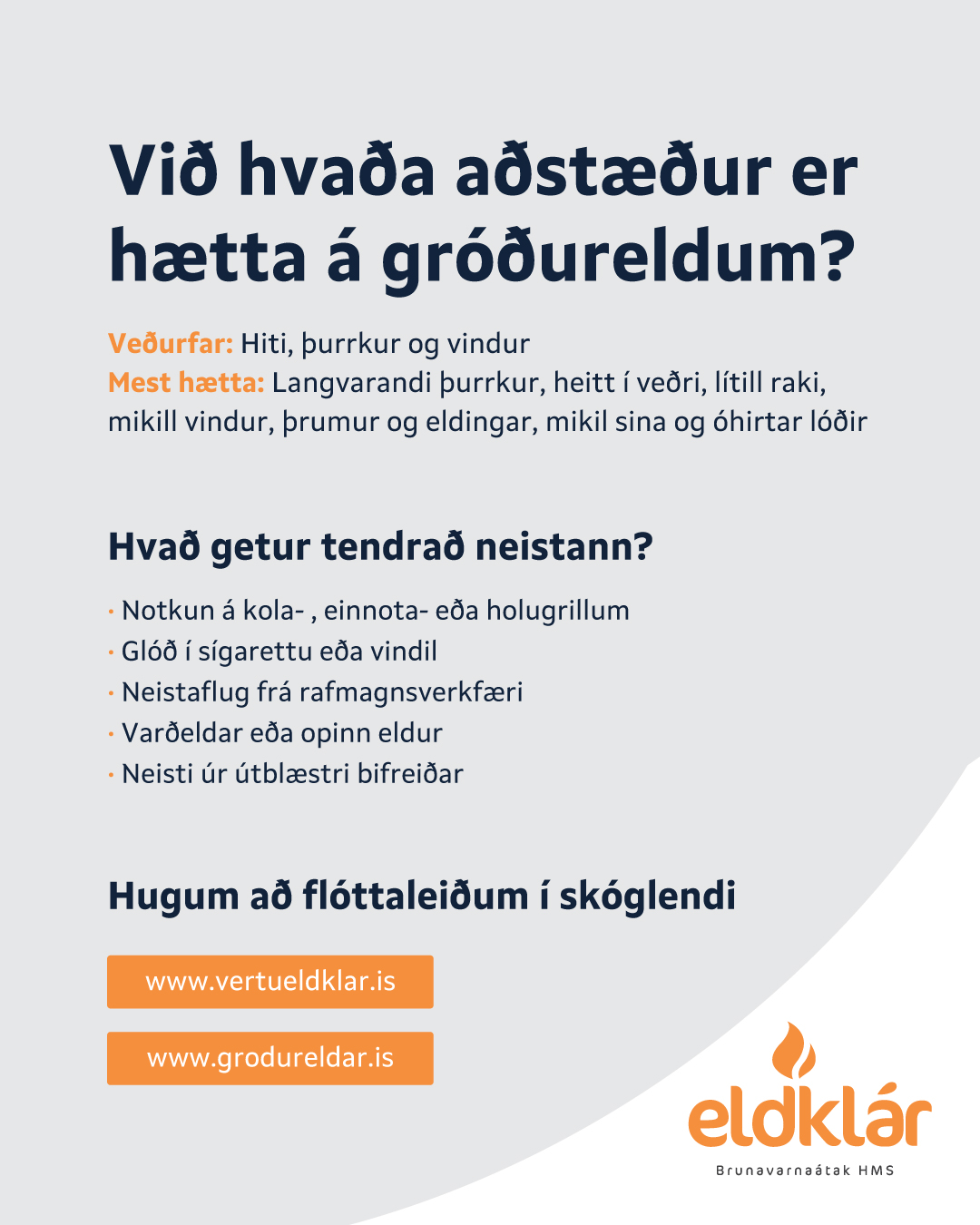 Veður- og gróðurfar hefur breyst mikið sem veldur því að hættan á gróðureldum og sinubruna hefur vaxið á síðustu árum. Hætta er fyrir hendi allan ársins hring, ekki engöngu á sumrin. Á vetrum getur frostþurrkaður gróður og sina verið jafn hættuleg og þurr sina um hásumar.